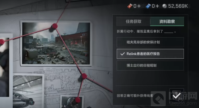 最后,点击右侧的【资料勘察】,根据提出的问题选择正确的答案即可参与。