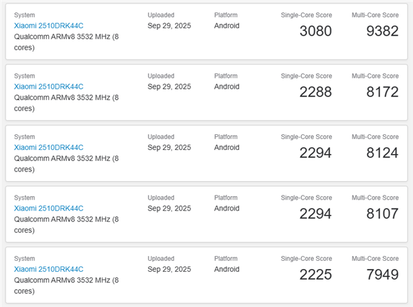 9月30日消息,近日,一款型号为“2510DRK44C”的小米手机跑分现身GeekBench数据库。