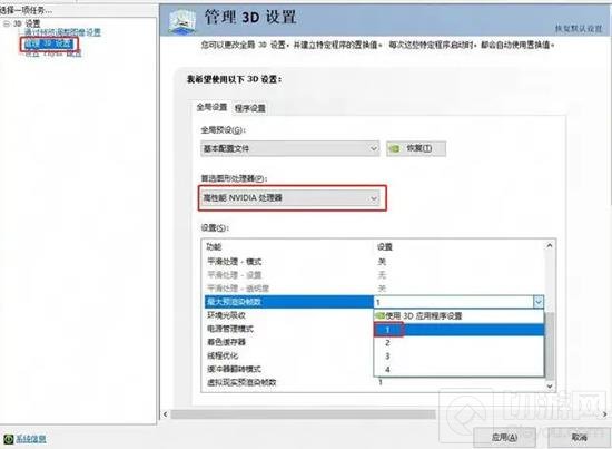 2.点击左侧“管理3D设置”-“全局设置”-“首选图形处理器”-选择“高性能NVIDIA处理器”