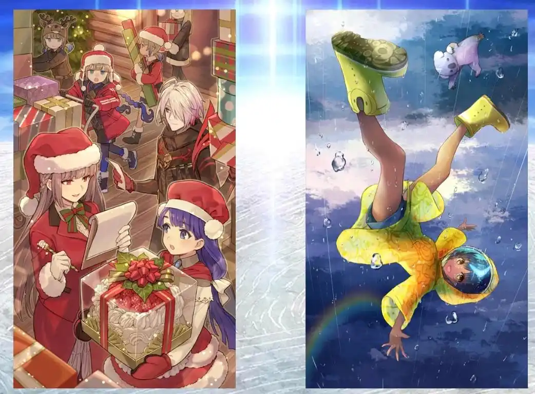 这里两张是今年圣诞和明年因陀罗祭的票加成礼装,如果觉得缺伤害的话,也可以把丸子喂给圣诞礼装,明年因陀罗祭开的时候再将这张礼装当丸子喂给因陀罗祭的票加成礼装,反正刷无限池一般不止一张满破礼装。