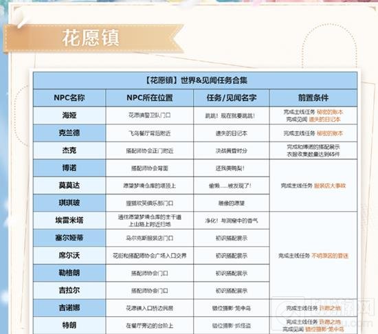 这些任务和见闻为玩家提供了丰富的游戏体验,让玩家在探索花愿镇的同时,深入了解游戏的故事背景和角色。完成这些任务不仅可以获得丰厚的奖励,还能解锁新的剧情和服装。建议玩家在游戏过程中,积极寻找NPC,触发并完成各项任务,以获得最佳的游戏体验。