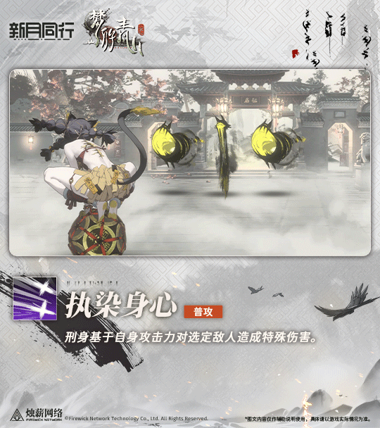 刑身基于自身攻击力对选定敌人造成特殊伤害,再基于自身特殊防御与【我执】层数对选定敌人造成额外伤害,并消除自身持有的【我执】。刑身受到伤害时,为自身添加一层【我执】,最多持有十层。此技能是刑身的核心输出技能,可以在战斗中造成大量伤害。合理利用【我执】层数,可以在关键时刻爆发高额伤害。