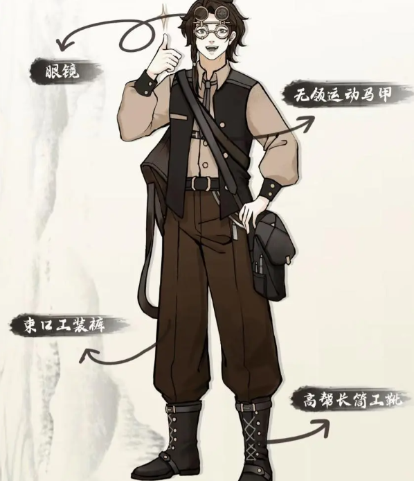 徐福兴身穿无领运动马甲,束口工装裤和高帮长筒工靴,脸上带着一幅眼镜,他的性格阳光开朗,对于美食非常有兴趣,一路品尝各地的风味小吃,也是他旅途的乐趣之一。