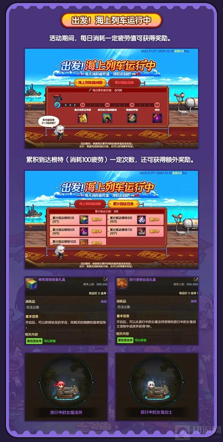 冒险列车远征护活动将在新版本中开启,玩家可以通过参与活动获得奖励。活动时间:11月27日版本更新后;活动内容:玩家在活动期间内,参与冒险列车远征护活动,完成指定任务可获得奖励;奖励内容:强化券、深渊票、金币等。