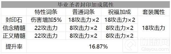 圣者封印是较难毕业的道具,也是水抗磨最为严重的部分。以下是圣者封印毕业词条带来的提升率: