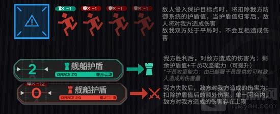 敌人侵入保护目标点时,将扣除我方防御系统的护盾值,当护盾值归零后,敌人将对我方造成伤害。