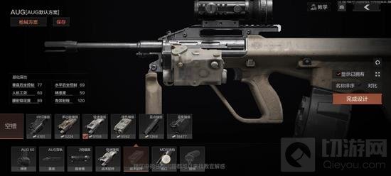 AUG突击步枪可改装项不多,只有瞄具、战术配件和枪口三处。在进行改装时,可以考虑将默认瞄具拆下替换成其它倍率更高的瞄具,同时加装一个镭指加强腰射,最后再加装一个消音器即可完成满改。