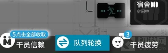 全局轮换:当有干员红脸(注意力涣散)且有可用替补时,可以使用一键换班的队列轮换功能。