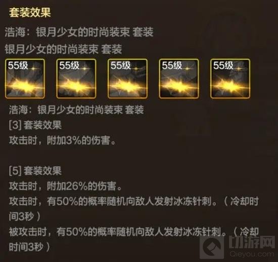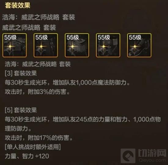 浩海:战术套属于辅助类套装,能为队友增加约12%的伤害,并附加队友增防效果,有利于队友在世界BOSS和降临罗特斯中生存,适合想要走输出+辅助类型的剑豪玩家。
