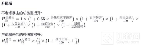 首先来看“重力之契轻甲套装”。在升级前,该套装提供的是55级15%力智和44%黄字伤害。而在升级至浩海版本之后,其属性变为了55级114%黄字伤害。考虑到暴击等因素的影响,“重力之契轻甲套装”在升级前的提升率为1107.99%,而升级后的提升率则达到了1156.64%,这意味着升级后整体提升了约4.21%。