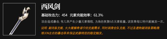 西风剑是希诺宁的首选四星武器。其高充能效率非常适合希诺宁,能够大幅减少她的元素能量需求,使得她能频繁使用元素爆发来为团队提供治疗和增伤。暴击时生成元素微粒的特效也进一步提高了希诺宁的充能速度,尤其是在携带暴击头或圣遗物副词条中有暴击率时,这把武器能够稳定触发特效。