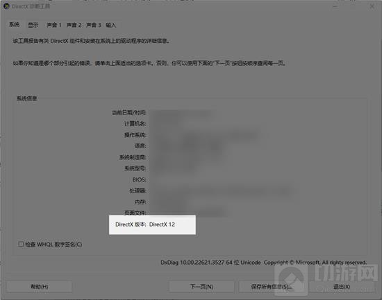 DirectX版本:游戏要求DirectX 12。可以在电脑上按下Windows徽标键+R,之后输入“dxdiag”(不用输入引号)弹出的窗口中即可看到设备支持的DirectX版本。另外运行后如果游戏提示缺少相关组件,你可以在微软官方网站下载DirectX更新包。