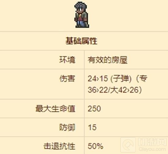 在肉山前,军火商会使用燧发枪攻击敌怪;在肉山后,则会使用迷你鲨攻击。