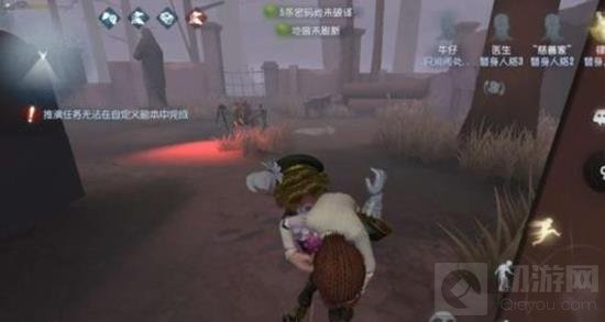 和男性和修的时候,牛仔修机时速度会减慢,因此他需要独立完成一台机器的修理,牛仔在砸晕监管者时,可以增加监管者的眩晕时间,这在某些情况下非常有用,此外牛仔还有背人受伤机制,牛仔会根据背的是同性还是异性,牛仔和被背者的受伤情况会有所不同,这需要玩家根据实际情况灵活应对。