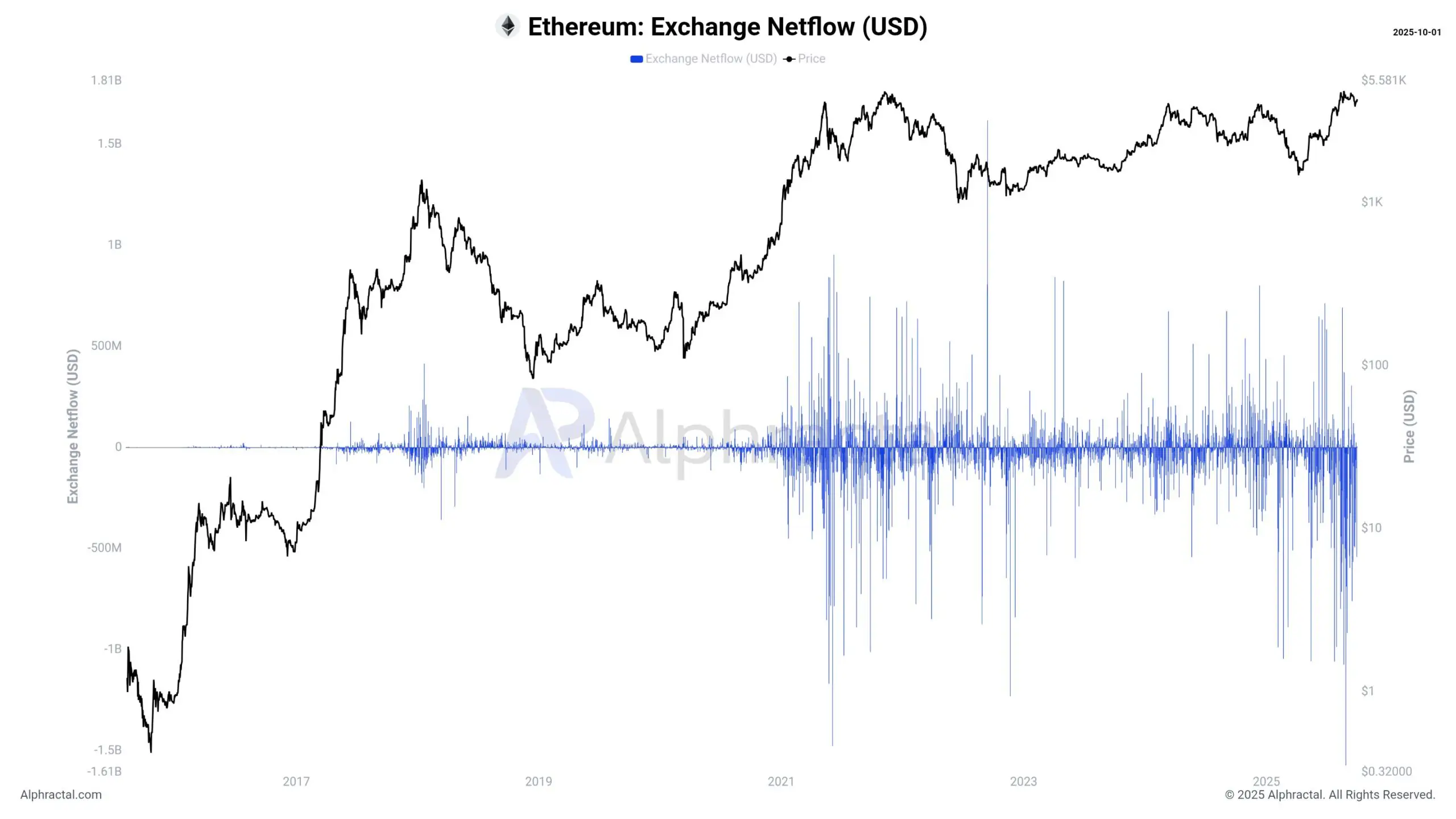 负值数据表明,买家(包括机构和散户)将 ETH 转入自托管或其他持有结构的速度超过了交易所吸收新存款的速度。Alphractal 将此描述为“以太坊历史上最强劲的做市兴趣”,暗示投资者的信心正在增强。