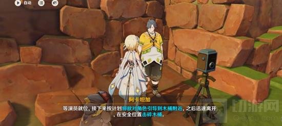 首先,需要前往纳塔地区的回声之子部落。传送到该部落附近的七天神像后,向地图的东南方向前进,穿过附身于嵴锋龙的龙魂区域,进入熔土裂隙,一路到达山顶。在这里,你会找到一个摄像机,与其交互开始调查。完成调查后,与NPC阿卡坦加对话,就能接取到“来拍映影吧”这个任务了。