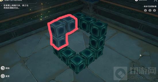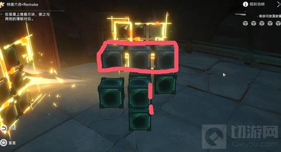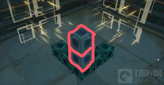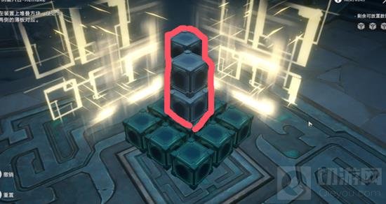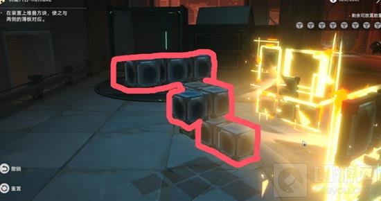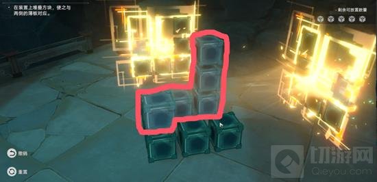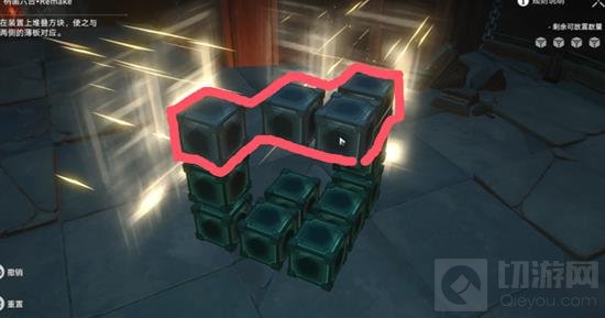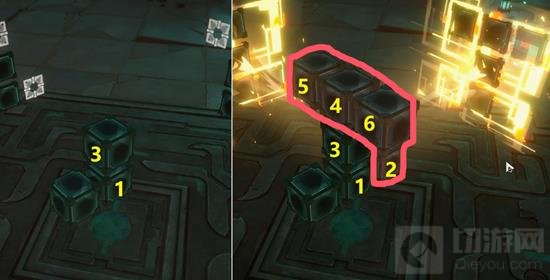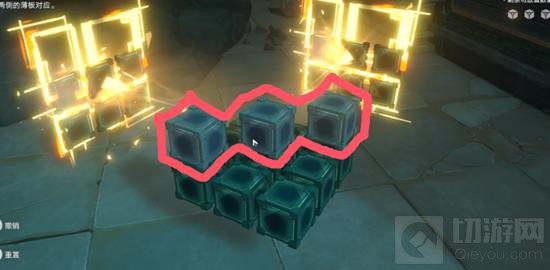 1层左上角的解谜如上图所示。如图,按照提示将圈住的这三个方块放出来即可。