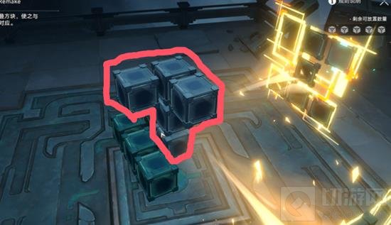 1层右上角的解谜如上图所示。按照提示将这五个方块放到上面即可。