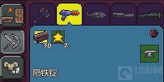 一旦你收集了所有必要的材料,就可以开始合成太空枪了。首先,将陨星锭放入铁砧中,然后添加燧发枪和坠落之星。