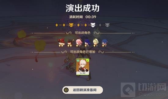 表演流程中,每一幕强制要求四位角色参演,但整体流程中各角色的出场次数、时机受限,这一限制可以借助演出积分解除:在每一幕战斗场景结束后,玩家根据该幕的初始目标选择及完成情况获得数量不等的强化代币--幻剧之花,除去自由化人物使用,该道具还可以用于本轮后续表演中队伍的增强。
