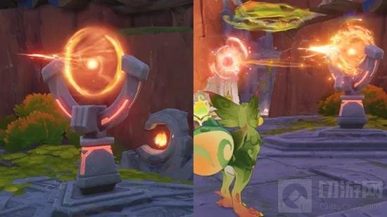 当「传接球」被扔进「球路转换器」的固定区域后,会在短暂蓄力后向球路转换器所对的方向重新发射。