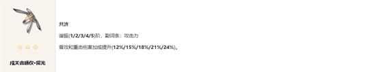 主要特性:提升共鸣效率,并通过普攻伤害获得额外的攻击加成。