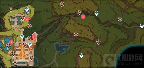 3号火神瞳:此处有一块石墙需要打碎,用元素视野找到对应位置然后击破它即可看到神瞳,同上面一样要做这个任务;