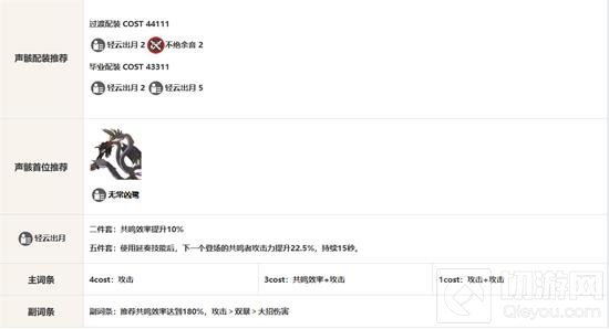 4cost主词条推荐:暴击、暴击伤害>攻击