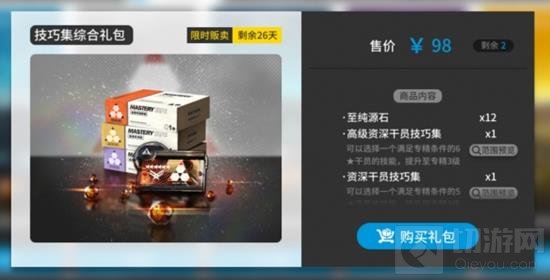 技巧集综合礼包:适合那些尚未完成干员专精3的玩家,性价比仅次于月卡,是非常值得考虑的一个选项。