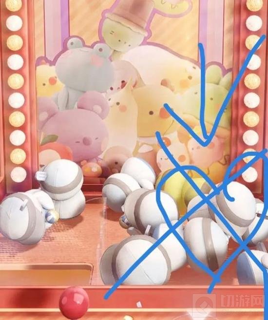 远离娃娃机最边缘的娃娃:这些娃娃往往难以被光圈完全覆盖,抓取起来十分困难。