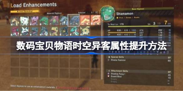 您可以使用加载增强功能来快速升级和提高所选数码宝贝的属性。这个过程是通过在你的储备中喂食较弱的材料数码宝贝来增强你选择的数码宝贝来完成的。