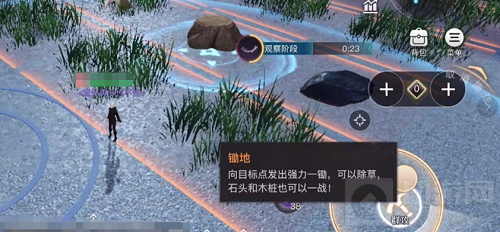 2、锄地的场地中有三种需要我们清除的有木头、石头以及杂草。其中木头和石头在清除的时候需要几人一起多锄几下才能清除,而且在攻击键CD的时候木头和石头都会回血。木头的回血比较慢,石头的回血比较快,木头的话单人锄3次就能清除。