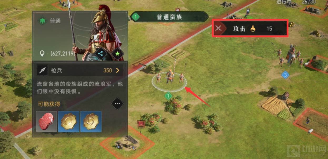 1,先进入游戏主页面,点击行走的蛮族,然后点击攻击就可以了。