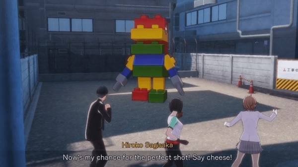 前往秋叶原最东侧区域:某条后巷。鷺坂会站在空地上一堆巨型积木前。