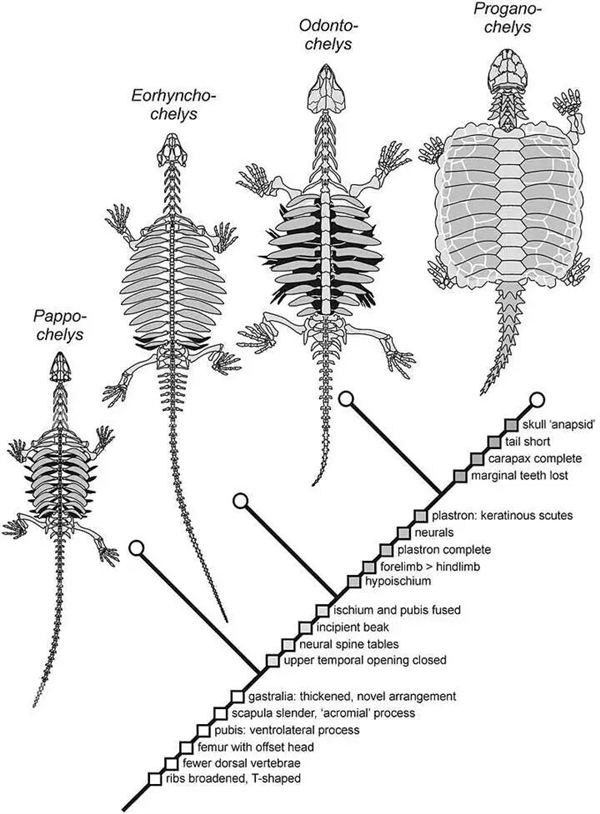 在所有龟鳖类中,它们背甲和腹甲的图案都是相互独立的,这意味着两者很可能还是独立进化的,或者说现代龟鳖类获得这样一幅完整的龟壳是经历了漫长演化的。