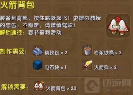 4、火箭背包解锁条件:火箭背包碎片*20。也可以使用迷你豆进行购买。