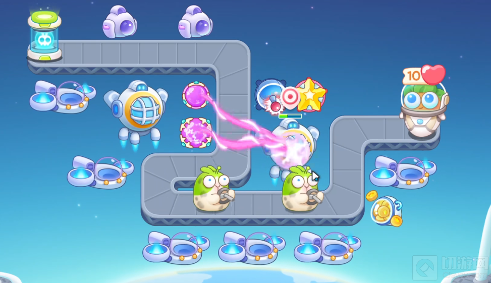 3、飞船兔发起袭击,在终点出放置多个星星,增加输出,具体位置如下。