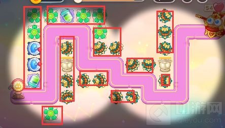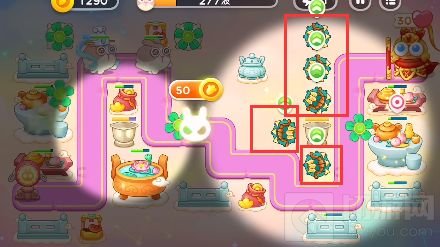 5、框中为放置炮塔的最佳位置,输出使用风扇和分裂箭即可,放置雷达提供破盾,毒针提供减速效果。
