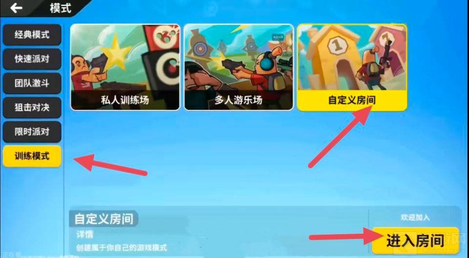 2,点击进入房间后,选择空闲的房间或输入房间号。点击进入即可成功进入别人的自定义房间。
