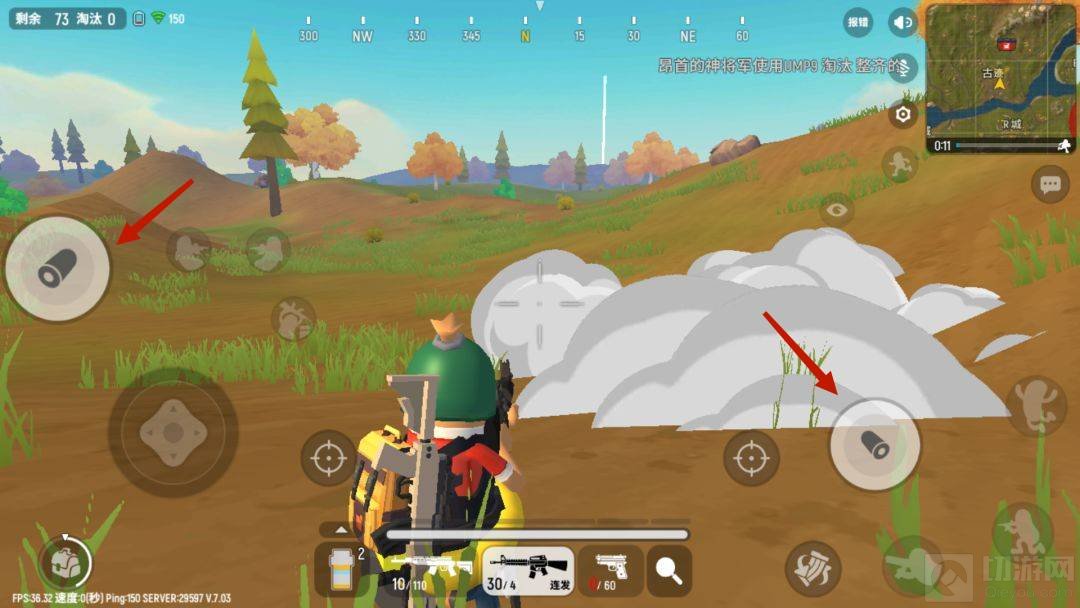 瞄准按钮左右两边都有,对称设计,两个按钮分别满足不同情况的需要,左边的开镜按钮设计是为了避免右手拇指粗瞄对准人以后又要抬起来去按开镜,有了左边瞄准按钮,右手粗略瞄准后左手直接点开镜,右手继续精瞄,然后左手按下射击按钮。瞄准按钮是点按可以开镜,长按也可以开镜的,长按放手后会自动收镜,少掉了一次点击。