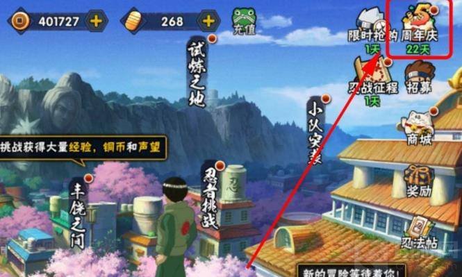 1、打开火影忍者手游,进入‘周年庆’活动界面。