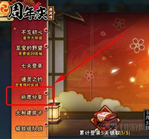 2、在‘周年庆’活动中,即可找到‘’祈愿分享按钮。