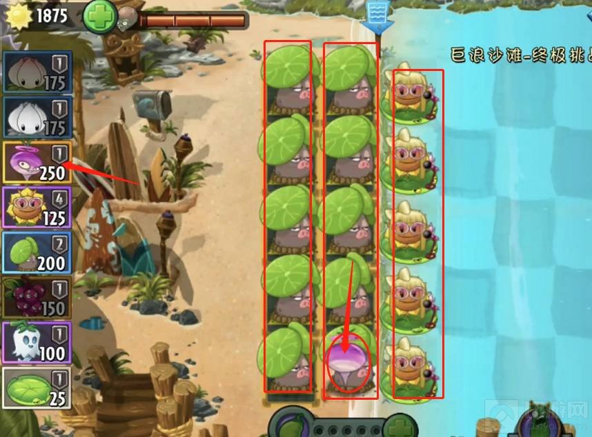 2.并开局放置两列第五个植物以及5个向日葵,最重要一点在那两列植物身上每个放上第三个植物,可以让装备上的植物给予豆子时攻会把放置该植物的技能都触发,并且攻击伤害很高。