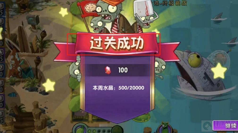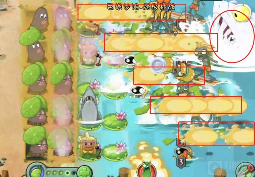 7. 最后操作就不用太多了,不断使用豆子配合植物本身的普通攻击伤害,直到打到鲨鱼僵尸血量耗尽即可。