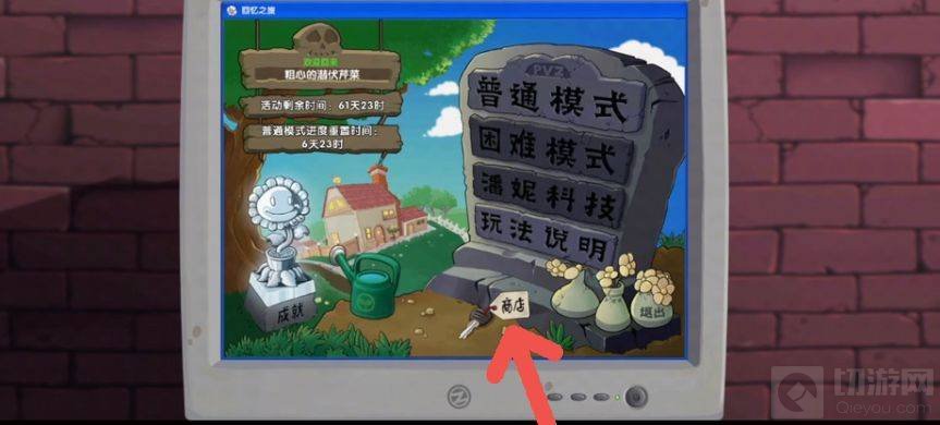 1.先登录植物大战僵尸2游戏,在游戏界面中点击竞技。