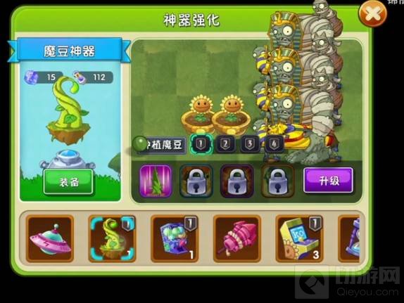 8.最后可点击游戏界面的植物上显示的神器强化,即可查看你的魔豆神器。