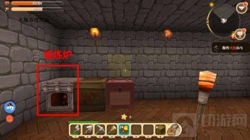 1.在屋内做一个熔炼炉。通过消耗燃料的方式将精铁矿转为精铁锭,熔炼炉是必不可少的。先合成木板解锁工具台,将工具台放在地面上右击,利用泥土和岩石块合成熔炼炉。