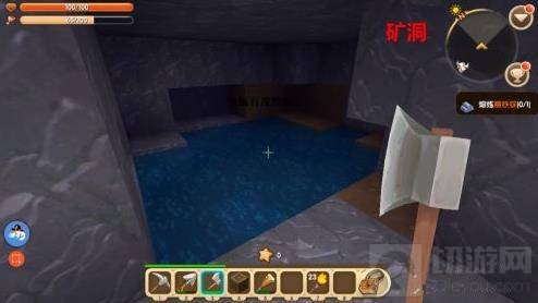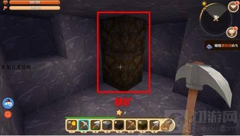 2.寻找铁矿。寻找铁矿主要有以下两种方式,选择某层地面一直往下挖,挖得比较深时可能会遇到铁块;寻找天然矿洞,里面一般有大量铁矿石和煤炭资源哦。