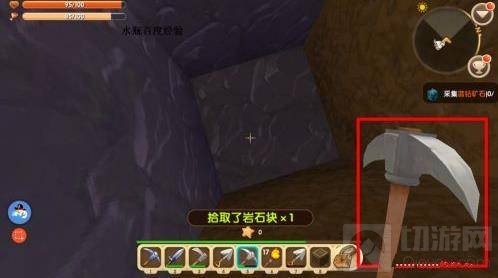 3.选择一层岩石块连续挖掘下去,很快就会挖到一个天然矿洞,并且能够看到黑漆漆的煤方块.这说明四周有铁矿的可能性非常高,在四周挖掘一番后,一般就会找到零碎的精铁矿。