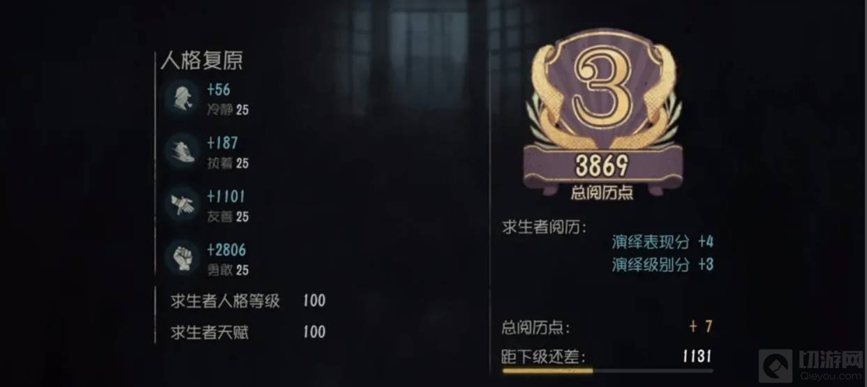 4、求生者以及监视者的天赋阅历值分开计算,因此玩家只有两种角色都进行游戏,才能够加点两种不同的天赋,阅历值每个赛季都可以继承。